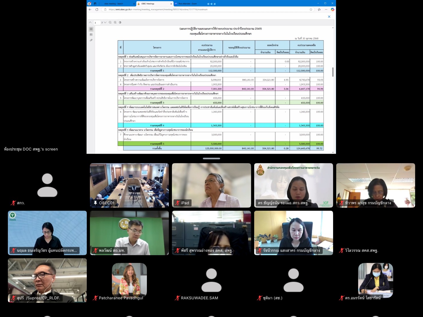 วันที่ 13 พฤศจิกายน 2568 ปลัดกระทรวงศึกษาธิการ มอบหมายให้ รองปลัดกระทรวงศึกษาธิการ (นายวีระ แข็งกสิการ) เป็นประธานการประชุมคณะกรรมการบริหารกองทุนเพื่อโครงการอาหารกลางวันในโรงเรียนประถมศึกษา ครั้งที่ 5/2568 เพื่อพิจารณาให้ความเห็นชอบ ผลการดำเนินงานของกองทุนเพื่อโครงการอาหารกลางวันในโรงเรียนประถมศึกษา โดยมี รองเลขาธิการ กพฐ. (นางภัทริยาวรรณ พนัธุ์น้อย) นางสาวอมรรัตน์ โสธารัตน์ ผู้อำนวยการสำนักงานกองทุนเพื่อโครงการอาหารกลางวัน รองผู้อำนวยการสำนักงานกองทุนเพื่อโครงการอาหารกลางวัน (นางเยาวรัช ปรีดาพันธุ์ ,นางสาวชัญญ์ธนัน ธงชัยวัทน์ธนัน , นางสาวสุชดา โชติพงษ์สิริ) ผู้เข้าประชุมประกอบด้วย ผู้ทรงคุณวุฒิกองทุนเพื่อโครงการอาหารกลางวัน ผู้แทนปลัดกระทรวงการคลัง ผู้แทนกระทรวงสาธารณสุข ผู้แทนอธิบดีกรมบัญชีกลาง ผู้แทนสำนักงบประมาณ ผู้แทนกองบัญชาการตำรวจตระเวนชายแดน ผู้แทนปลัดกรุงเทพมหานคร ผู้อำนวยการกลุ่มบริหารเงินนอกงบประมาณและเงินสวัสดิการ ผู้แทนสำนักงานคณะกรรมการการศึกษาเอกชน